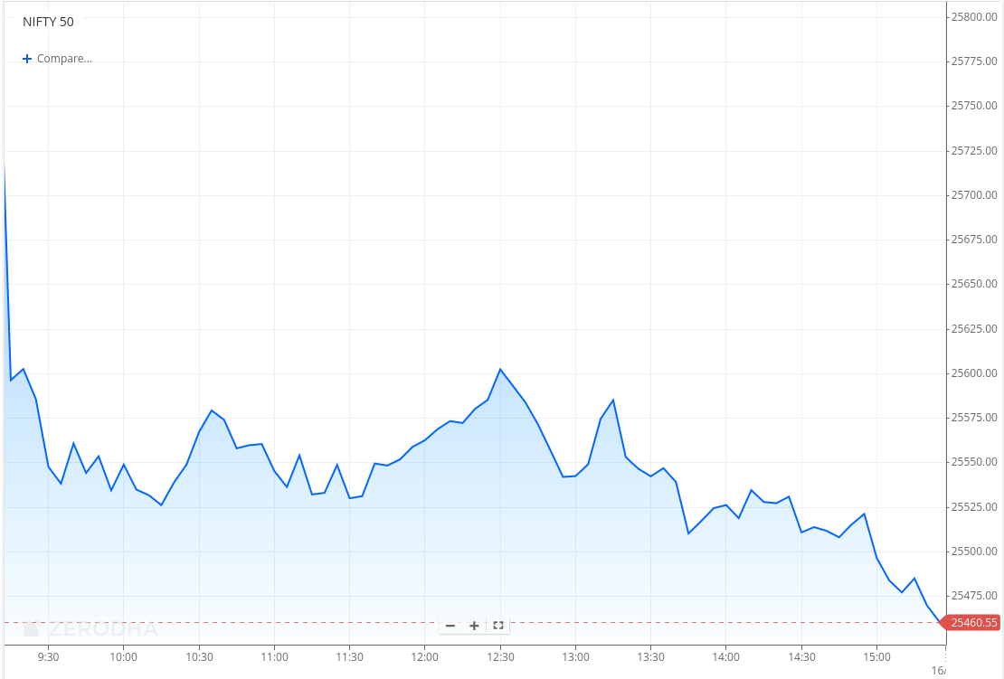 In the second half, the index gradually drifted lower again, with selling pressure building through the afternoon. Nifty slipped below 25,500 post 2:30 PM and continued to weaken into the final hour, eventually closing near the day’s lows at 25,471.10. Overall, it was a weak session dominated by sustained selling, with IT-led pressure and fragile global sentiment keeping risk appetite muted.