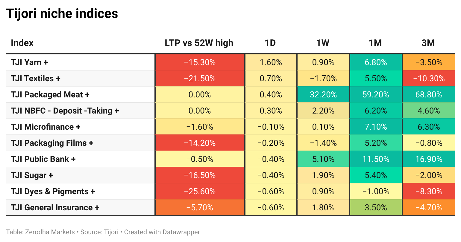 Tijori is an investment research platform that has constructed niche indices for various themes and sub-sectors. They help you understand the market performance of narrow slices of the market. You can also track the Promoter buying and other interesting stuff, like Capex activity by the companies in the Tijori App’s idea dashboard