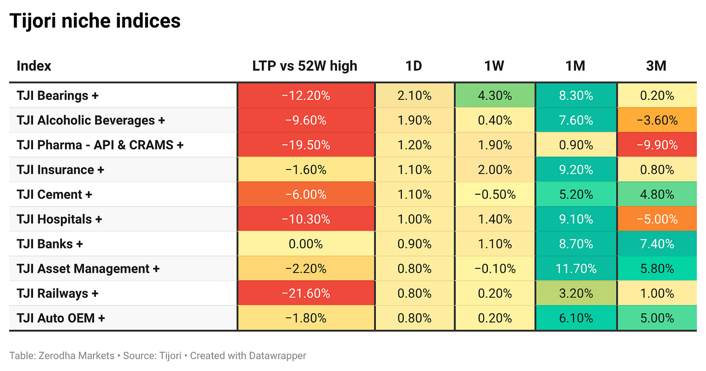 Tijori is an investment research platform that has constructed niche indices for various themes and sub-sectors. They help you understand the market performance of narrow slices of the market. You can also track the Promoter buying and other interesting stuff, like Capex activity by the companies in the Tijori App’s idea dashboard