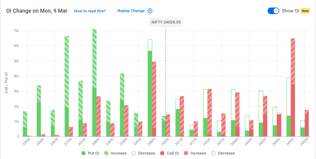 Note: OI is subject to multiple interpretations; however, generally, an increase in Call OI indicates resistance in a falling market, while an increase in Put OI indicates support in a rising market.