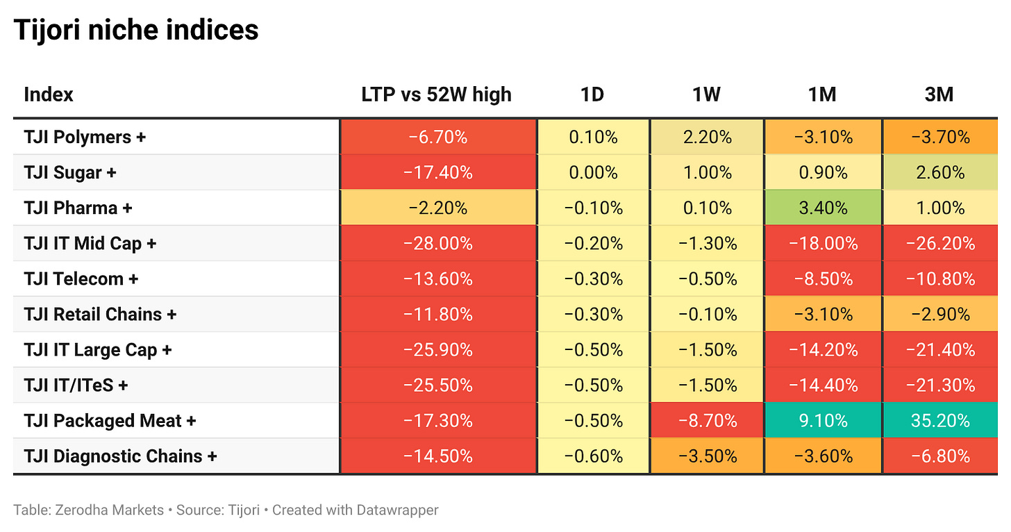 Tijori is an investment research platform that has constructed niche indices for various themes and sub-sectors. They help you understand the market performance of narrow slices of the market. You can also track the Promoter buying and other interesting stuff, like Capex activity by the companies in the Tijori App’s idea dashboard