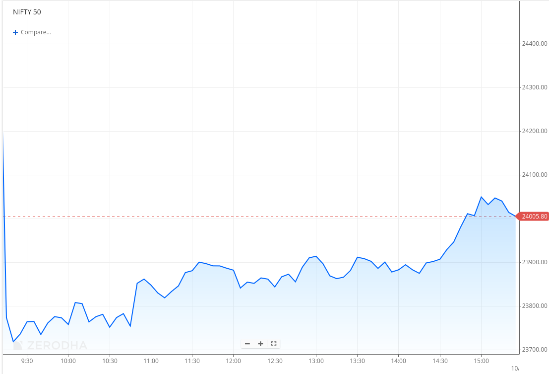 Nifty closes sharply lower near 24,000 despite some recovery intraday