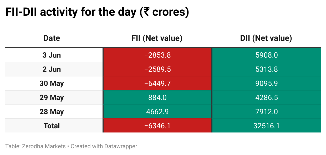 Note: The above numbers for Commodity futures were taken around 5 pm. Here’s the trend of FII-DII activity from the last 5 days: