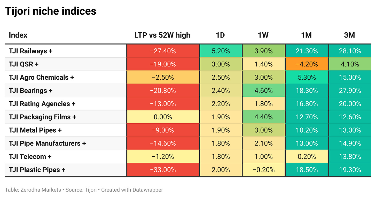 Tijori is an investment research platform, and they have constructed niche indices for various themes and sub-sectors. They help you understand the market performance of narrow slices of the market. You can also track the Promoter buying and other interesting stuff like Capex activity by the companies in the Tijori App’s idea dashboard