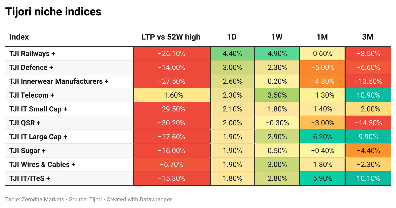 Tijori is an investment research platform that has constructed niche indices for various themes and sub-sectors. They help you understand the market performance of narrow slices of the market. You can also track the Promoter buying and other interesting stuff, like Capex activity by the companies in the Tijori App’s idea dashboard